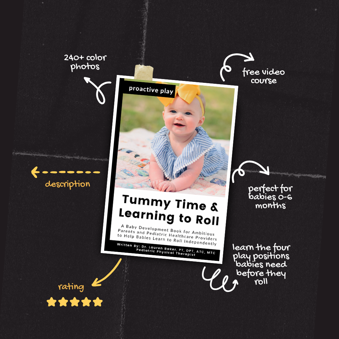 Tummy Time and Learning to Roll is the first book in the Proactive Play series written by Pediatric Physical Therapist Dr. Lauren Baker in order to help Ambitious Parents and Pediatric Healthcare Providers learn how to help babies master tummy time and learn to roll.